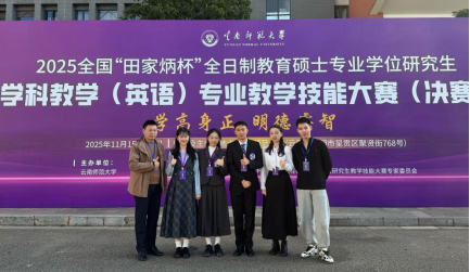 11月14日至16日,全国“田家炳杯”全日制教育硕士专业学位研究生学科教学(英语)专业教学技能大赛决赛在云南师范大学主办。此次大赛中我院2024级学科教学(英语)专业研究生黄俊楠、王雨涵荣获二等奖,舒苑、王钰杰荣获优秀设计奖。同时,鲁玲萍、谢雅和、周红兵和许洲老师荣获优秀指导教师奖。